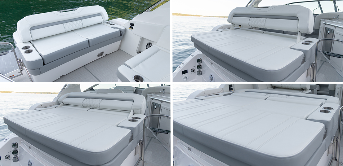 Maximieren Sie den Komfort an Deck. Mit dem optionalen Vordeck-Sunpad schaffen Sie eine zusätzliche Liegefläche. Das Highlight ist die verstellbare Kopfstütze (Multi-Position Headrest), die sich flexibel an Ihre Bedürfnisse anpasst und entspanntes Liegen neu definiert.